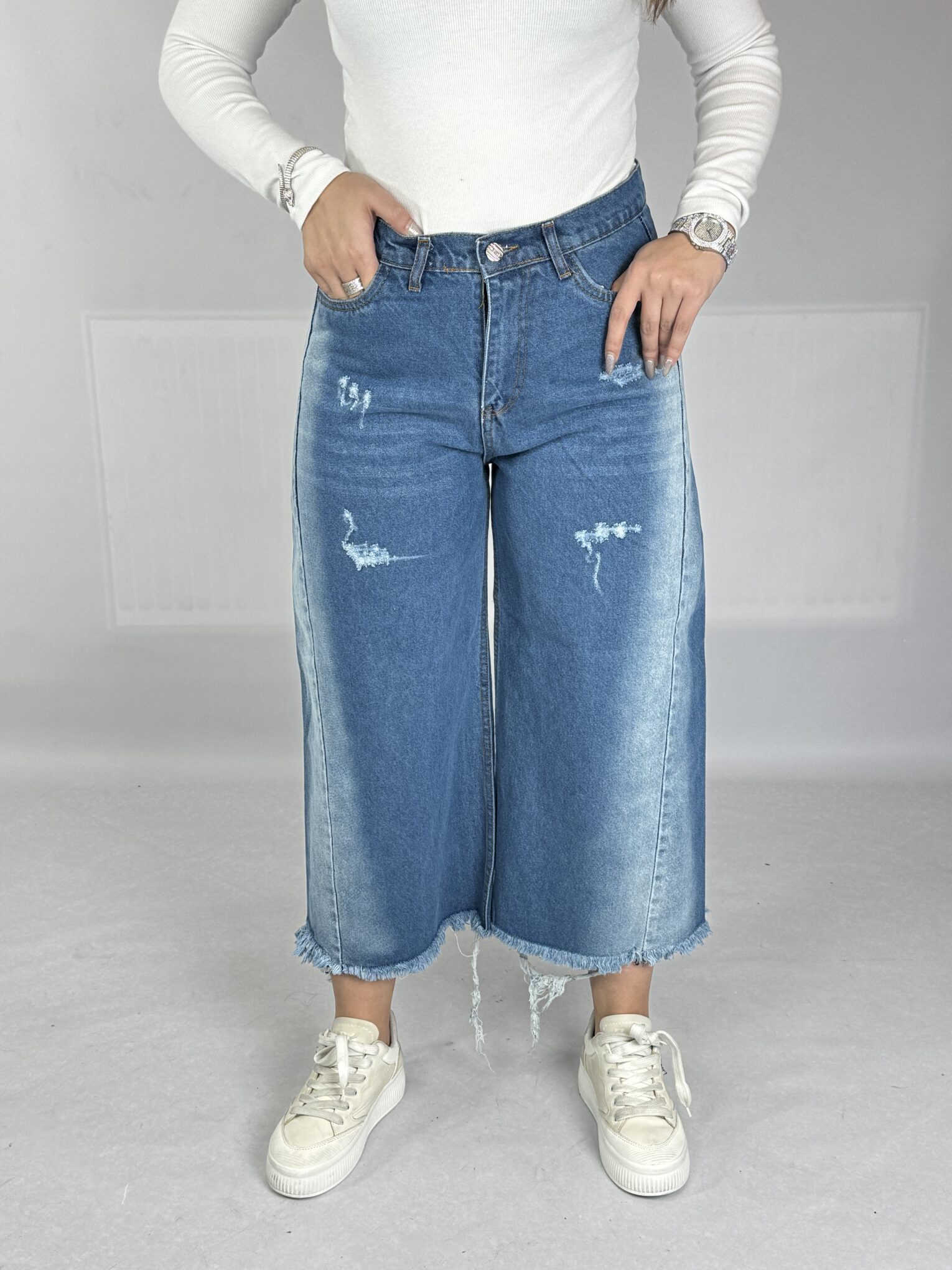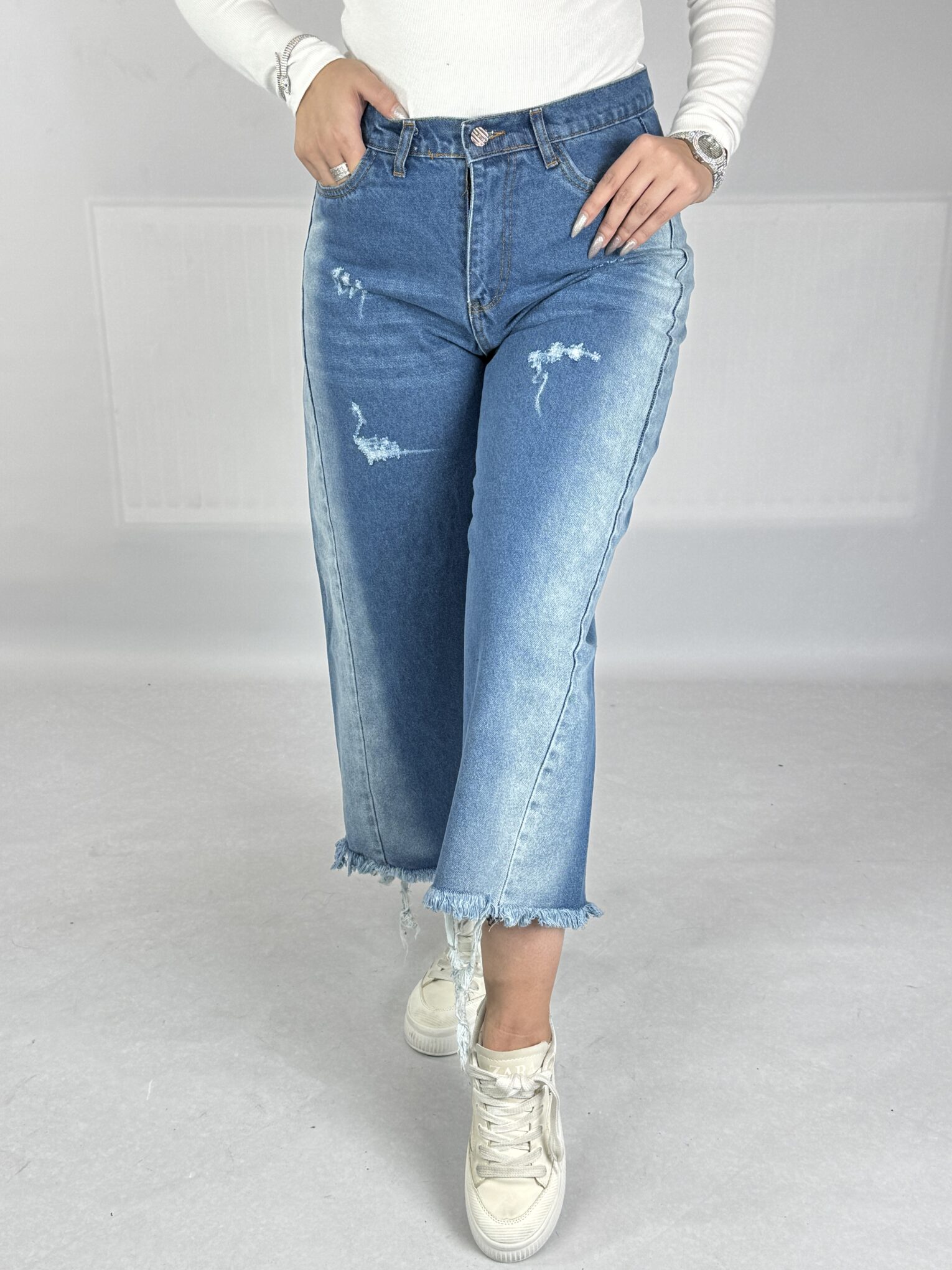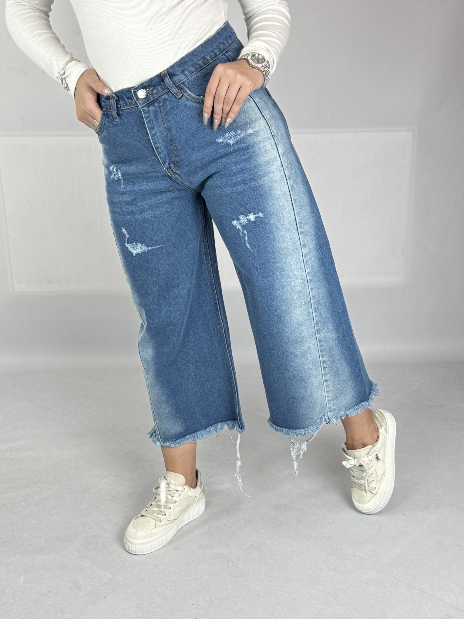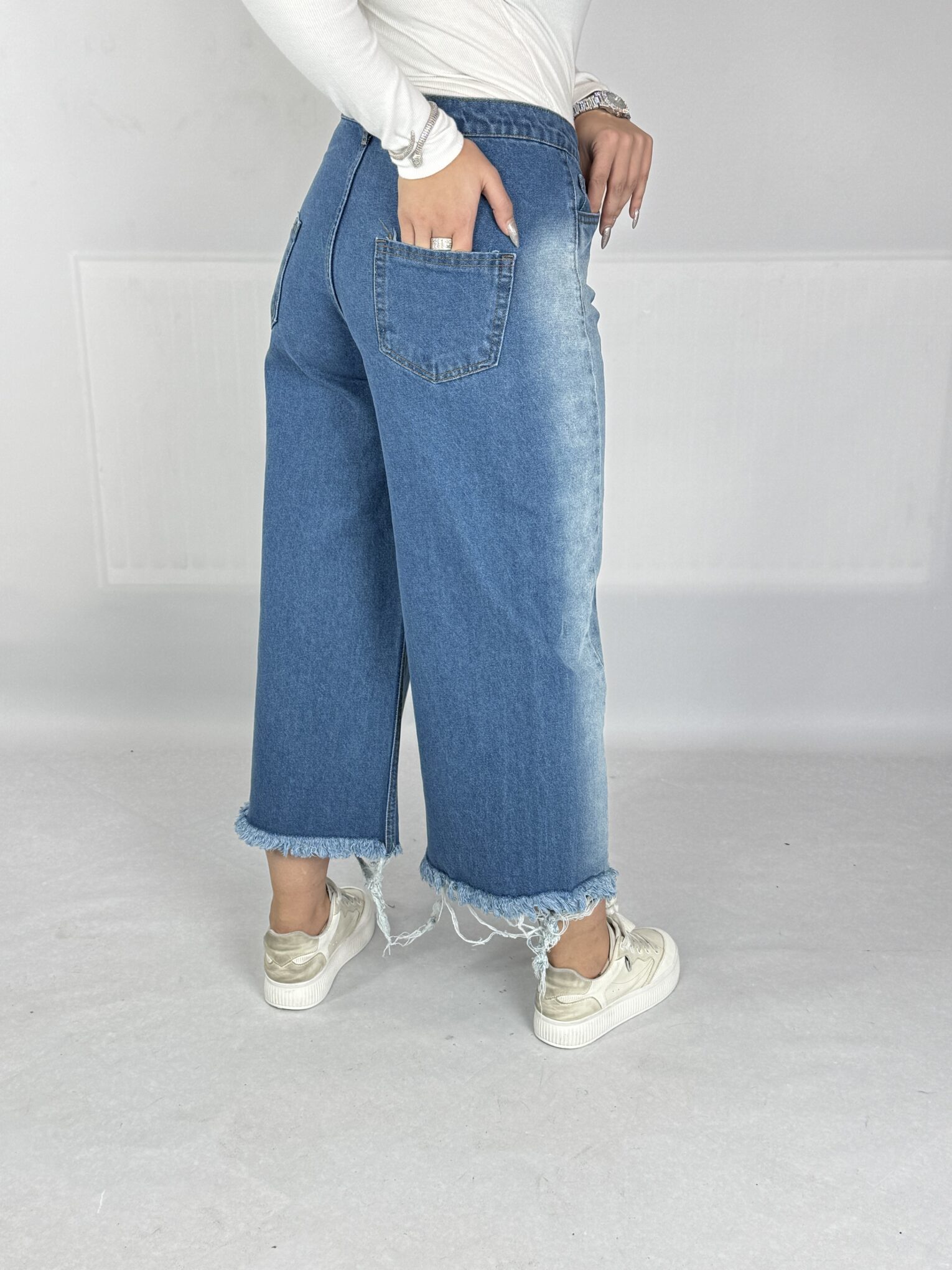 شلوار جین شافل بگ آبی تینت دار