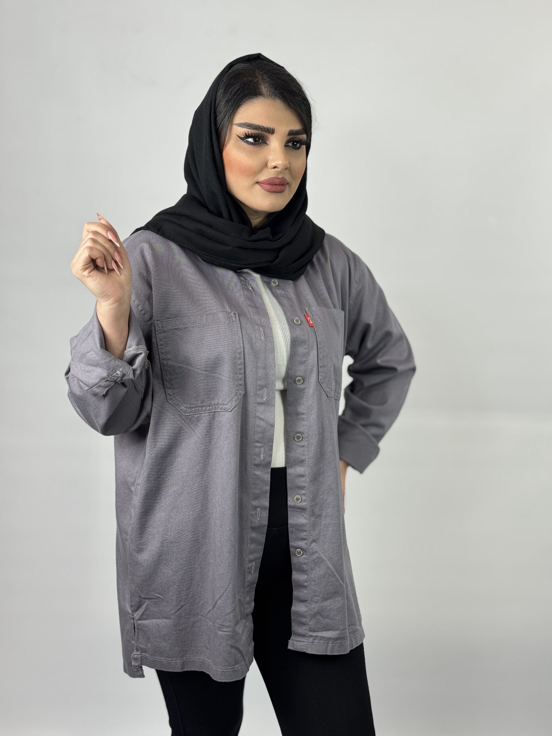مانتو شومیزی طوسی روشن کد 177